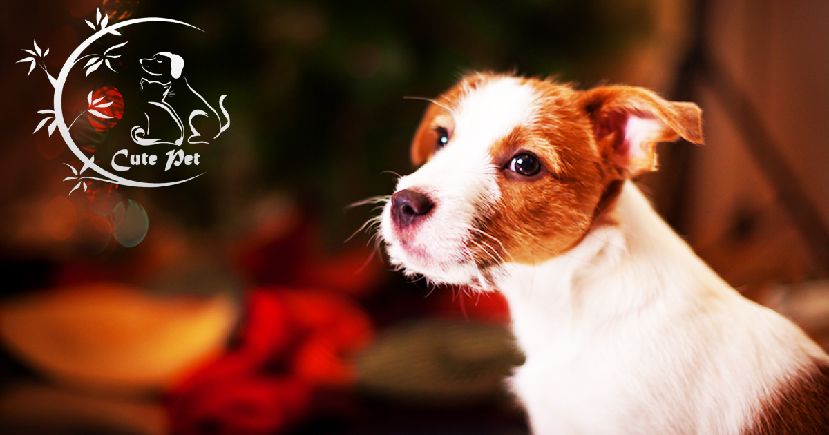 Dog Jack Russell Terrier. Puppy. Christmas, holiday, christmas